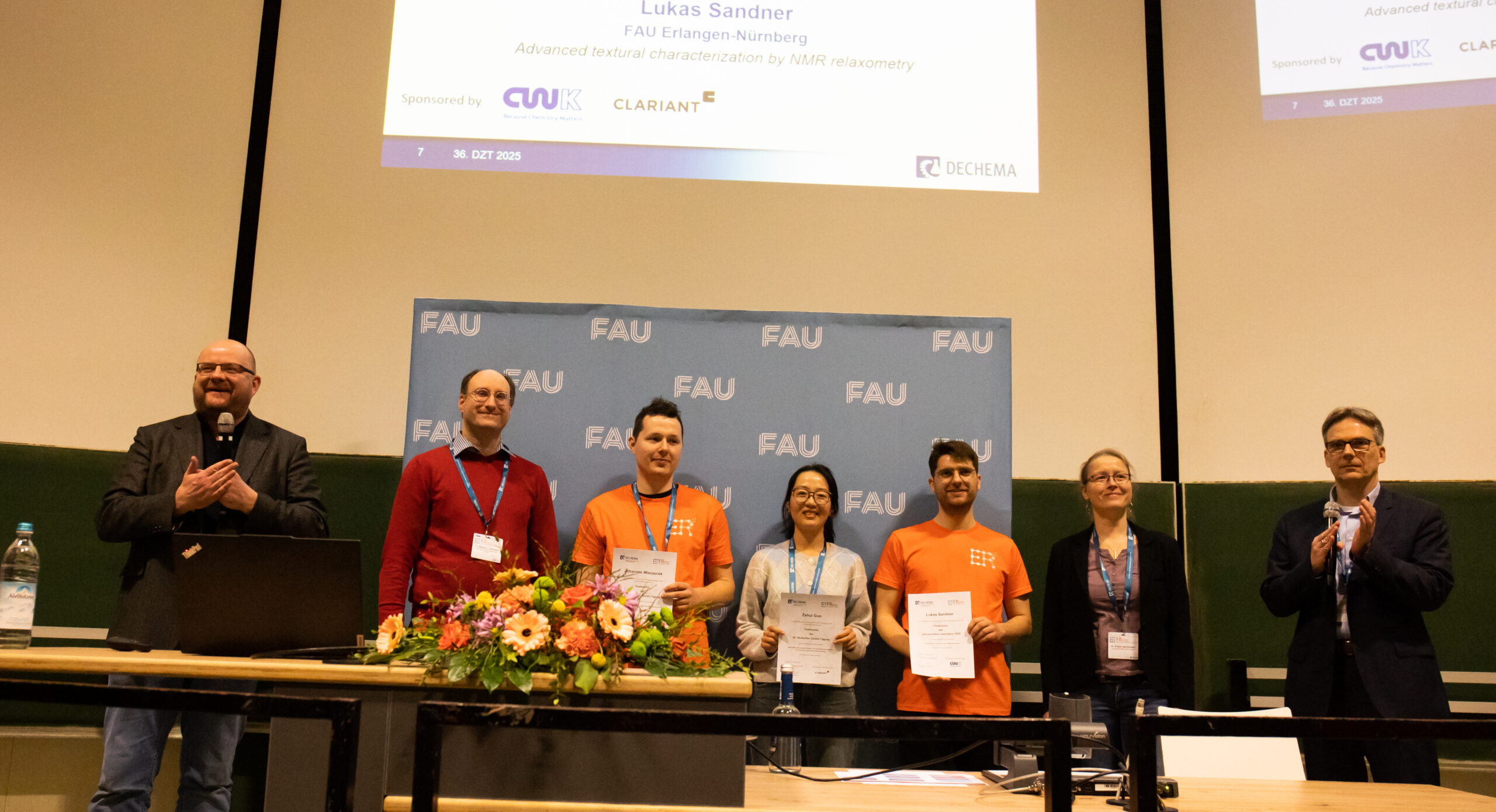 - Lukas Sandner für sein Poster: “Advanced textural characterization by NMR relaxometry.” (Autoren: L. Sandner, C. Vorndran, M. Thommes)